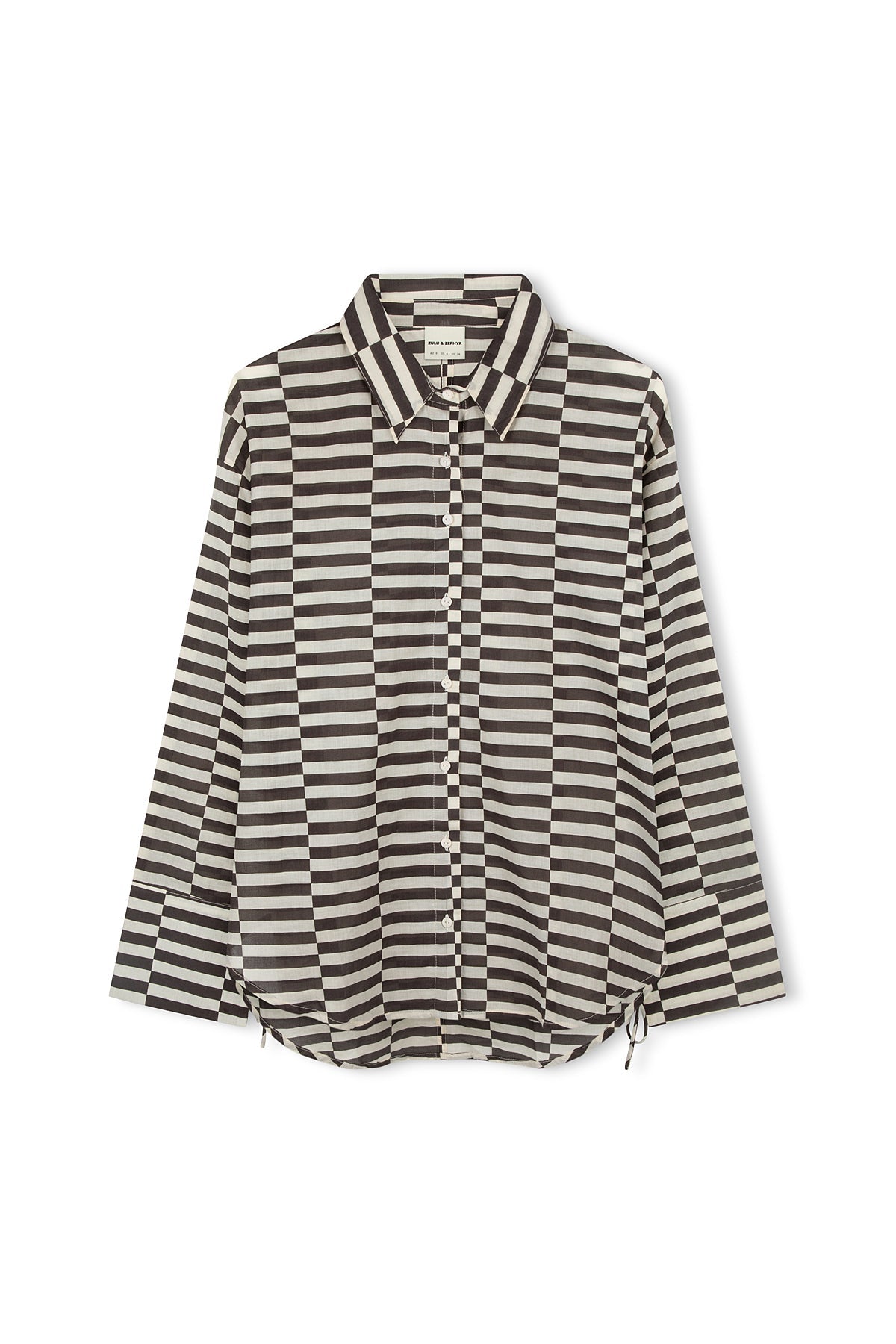 The Cocoa Grid Cotton Shirt features an oversized fit, classic shirt collar, centre-front buttons, and a curved hem with large cuffs and tie-sleeve details. Made from a lightweight, soft voile with a modern grid pattern, this relaxed shirt offers both comfort and style. Pair it with the Cocoa Grid Textured Knit Pant or Cocoa Mid Rise Recycled Denim Jean for a coordinated look, or wear it open over swimwear for a chic poolside look.