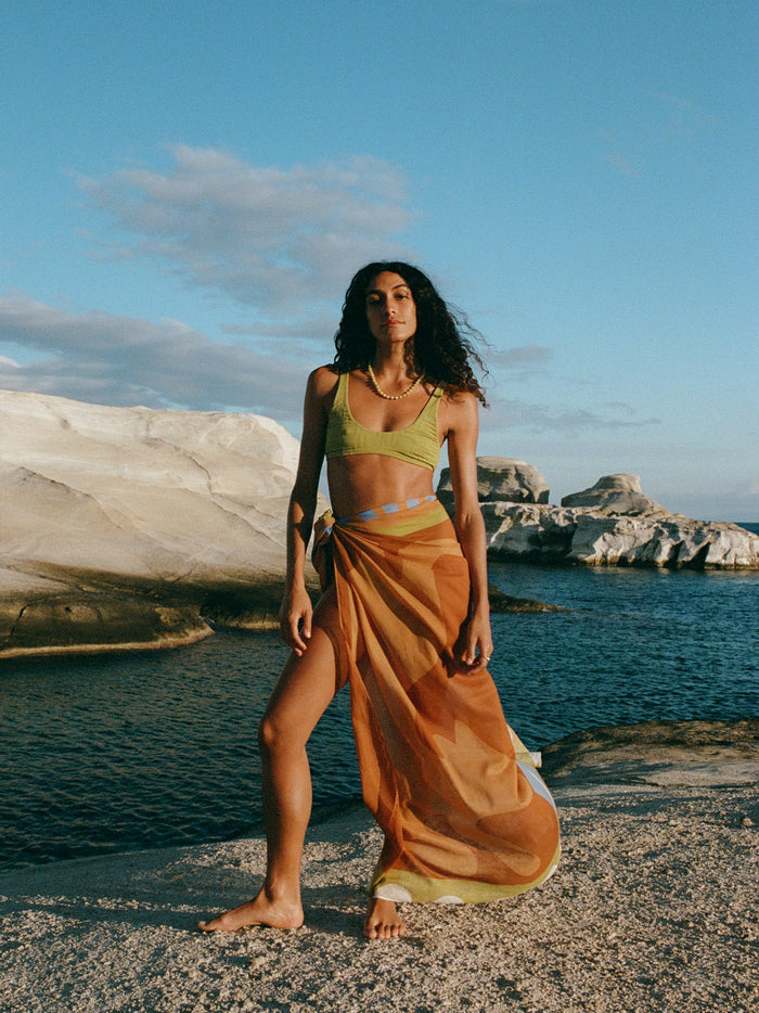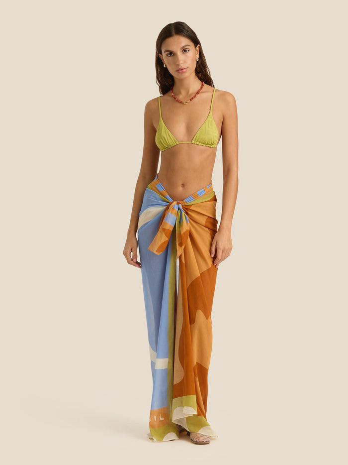 Where it all began. The Square Pareo — our signature piece — is a perfect square of lightweight organic cotton, made with all your over-swim needs in mind. Versatile and effortless, it can be tied as a mini or midi-length beach cover-up, or folded into quarters and worn as a smaller square scarf.