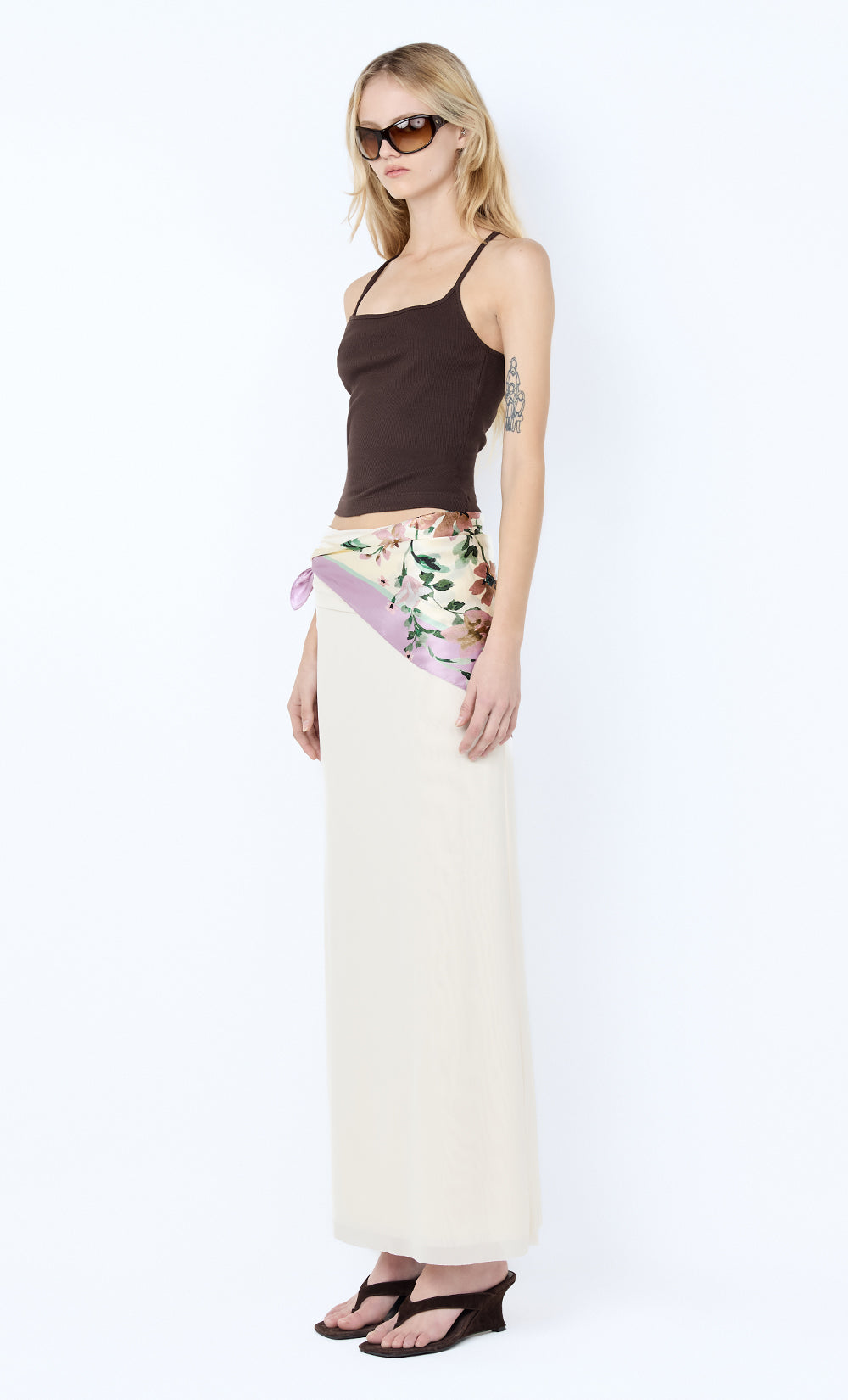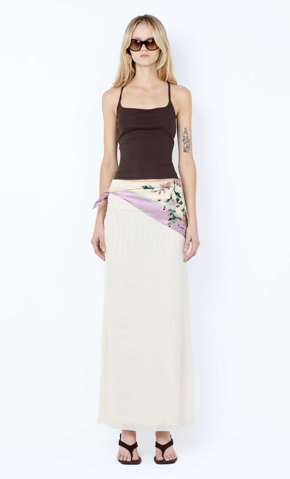 A sleek heavy rib tank with a fitted silhouette and minimalist racerback, perfect for layering or wearing solo for effortless everyday styling.