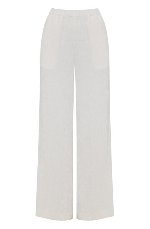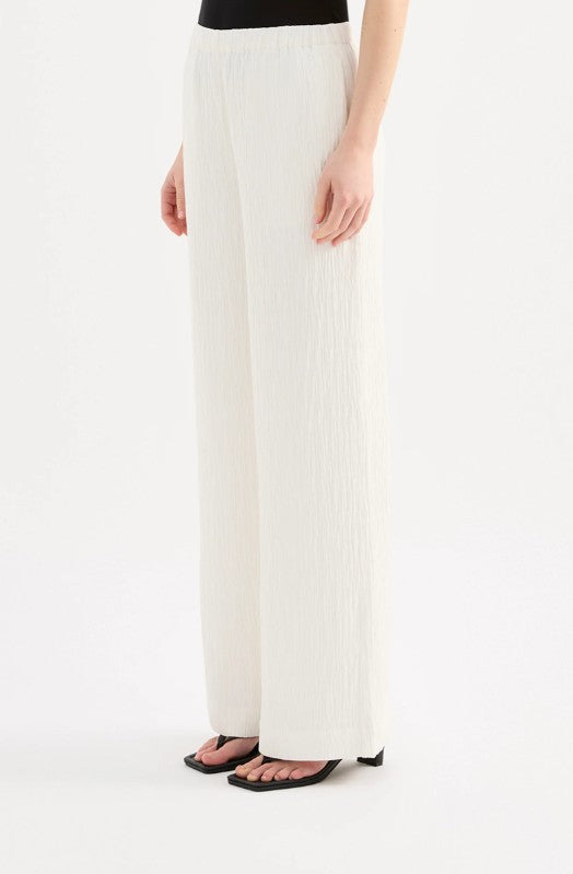 The Danika Pant is made from a crinkle textured fabric which has a dry, lightweight hand feel. The silhouette is relaxed with a straight, full length leg. Features include an elasticated waistband and side seam pockets.