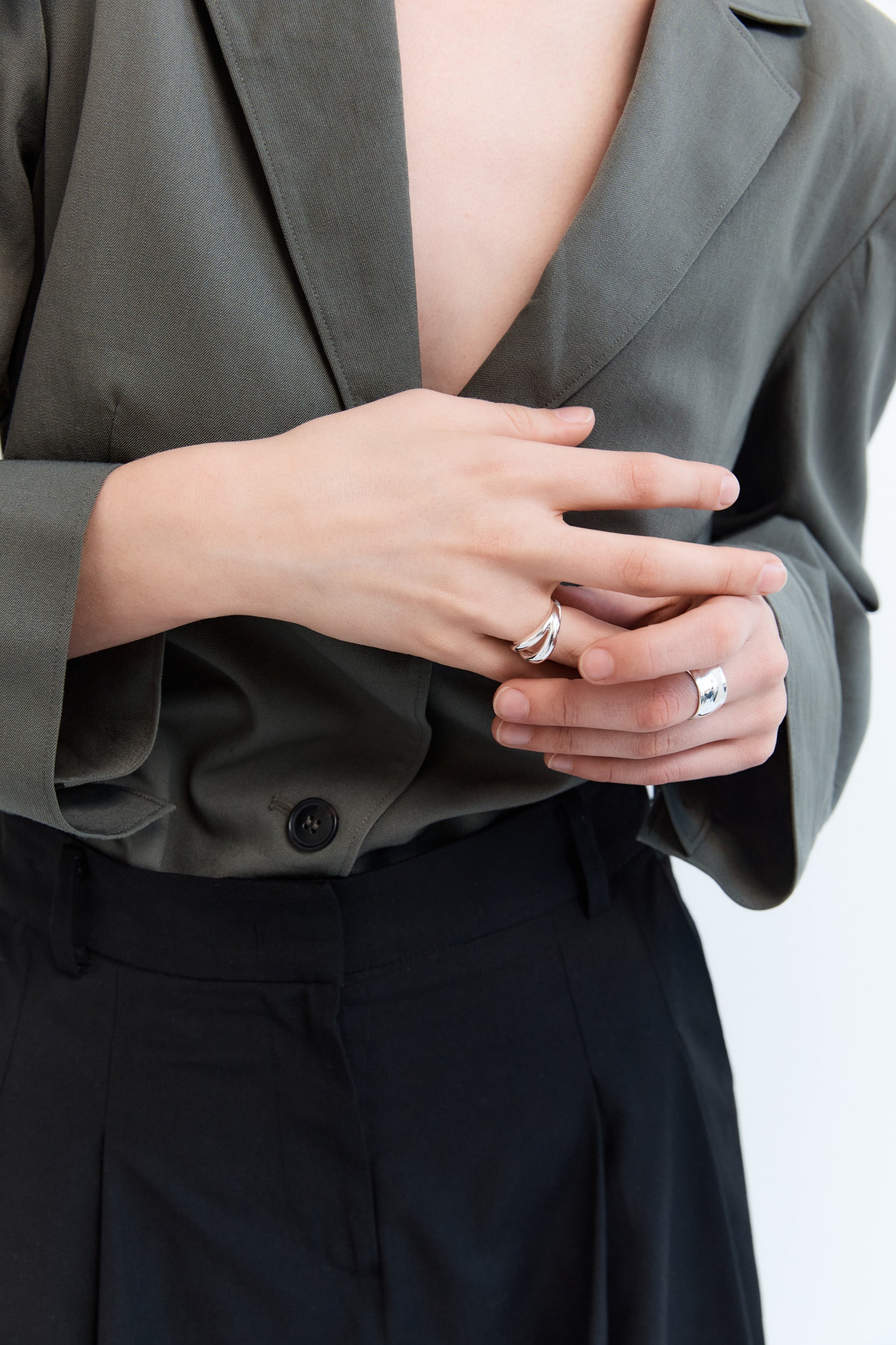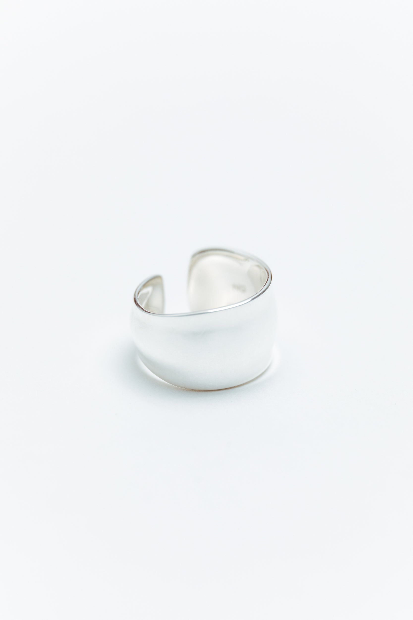 13mm open band ring tapering to 8mm at the opening. Soft-raised organic detail through the centre.