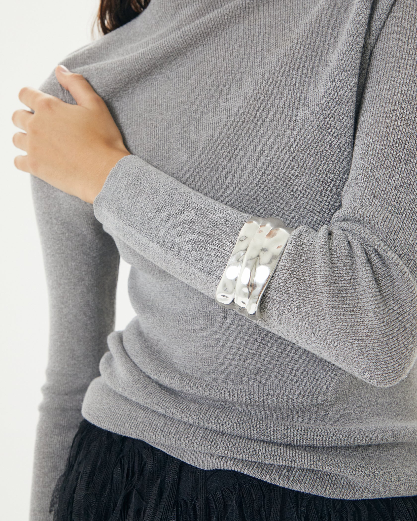 The Sloane Cuff embodies sculptural minimalism, with fluid lines and a brushed silver finish that give it a timeless, organic edge. Designed to sit comfortably on the wrist, it’s a bold yet versatile piece that elevates everyday styling.