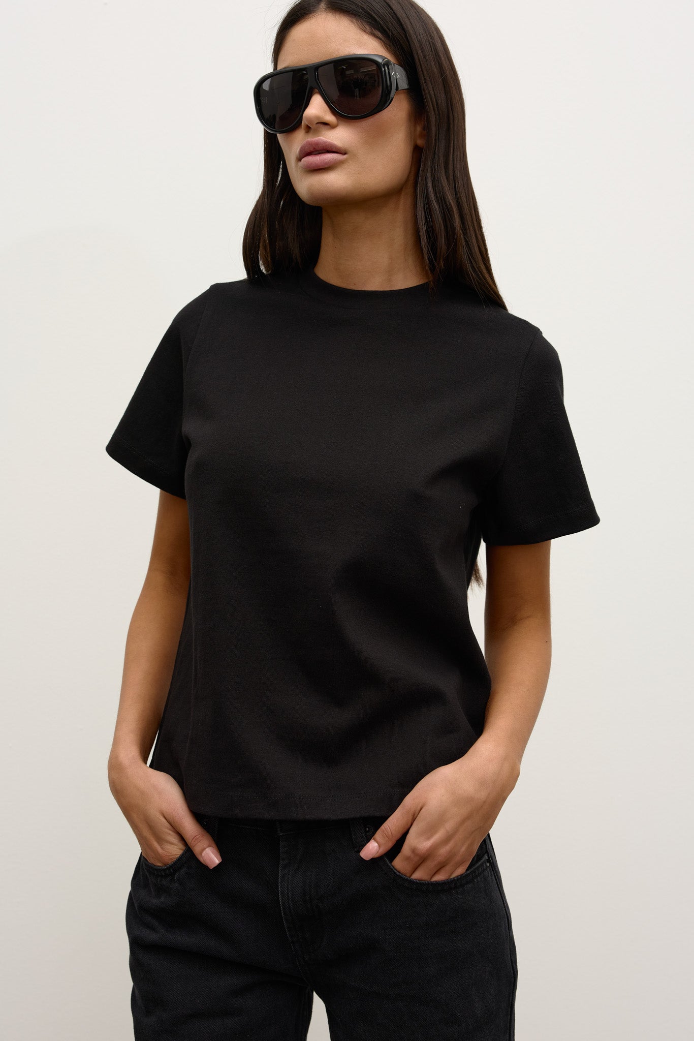 An elevated essential for everyday wear, the Tess T-Shirt features a relaxed silhouette with a classic crew neckline and short sleeves. Crafted from soft cotton jersey, it offers a structured yet comfortable fit — perfect for effortless, refined styling.