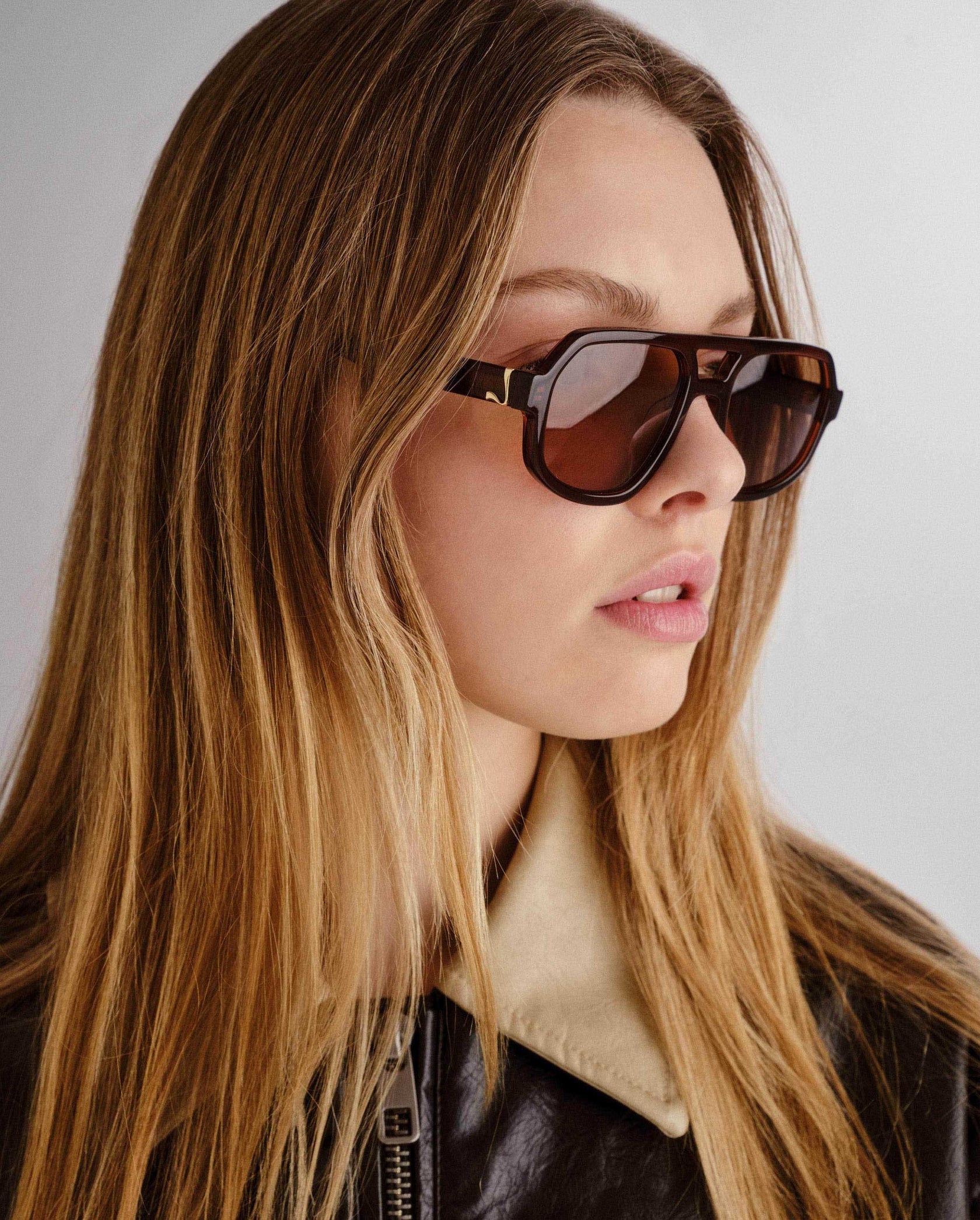 The Banks is an oversized aviator frame designed with thin temples to create a wearable classic silhouette. Featuring our organic L gold hardware on both temples to elevate this staple.