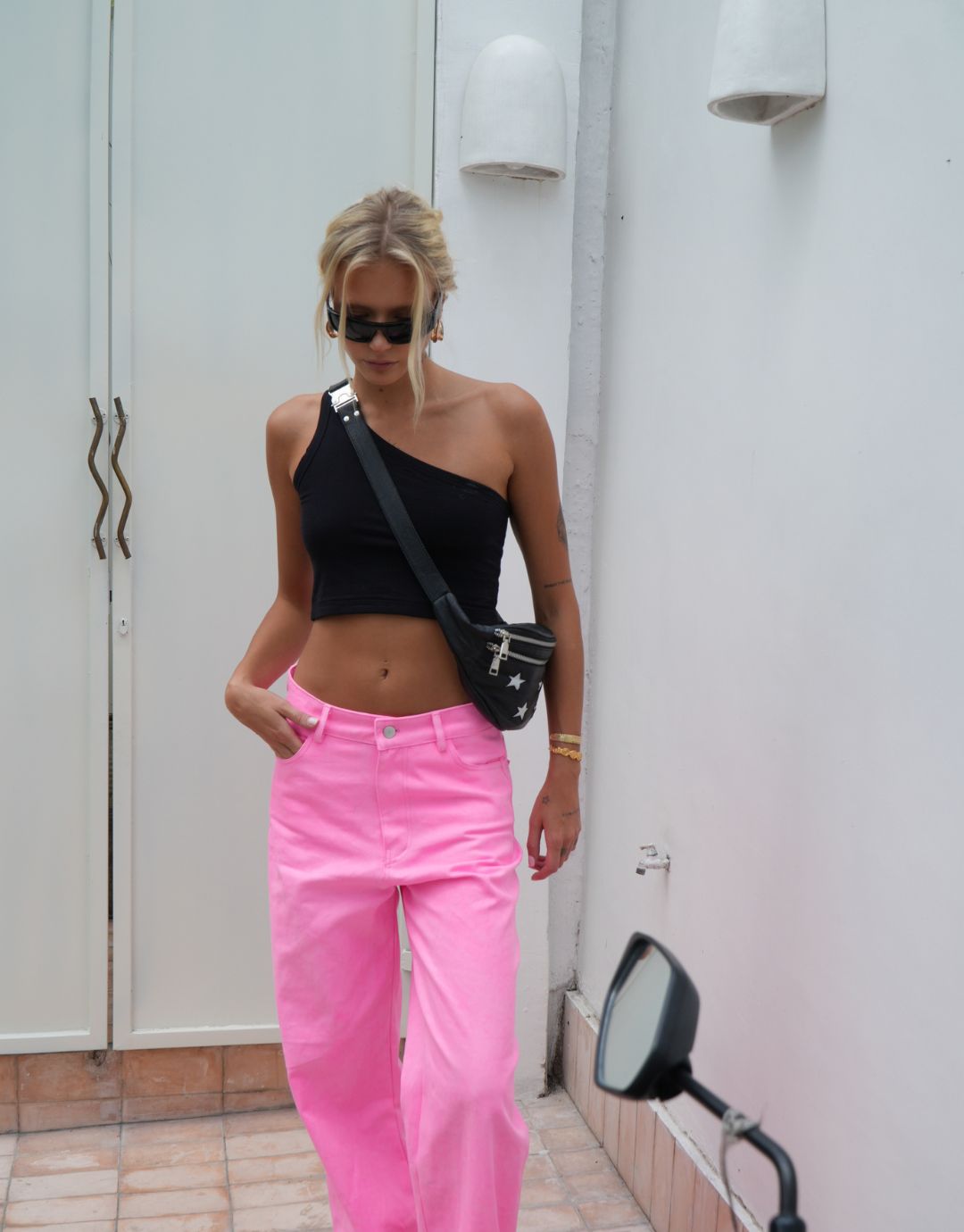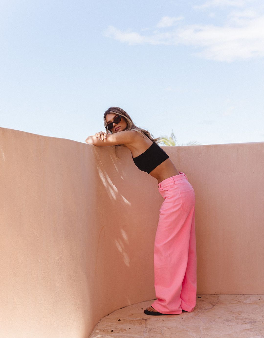The Juni Jeans have been custom-dyed to a unique acid-wash pink hue. These straight-leg, mid-rise jeans are your new statement denim. Crafted for a relaxed yet flattering fit, they offer the perfect balance of edge and ease.