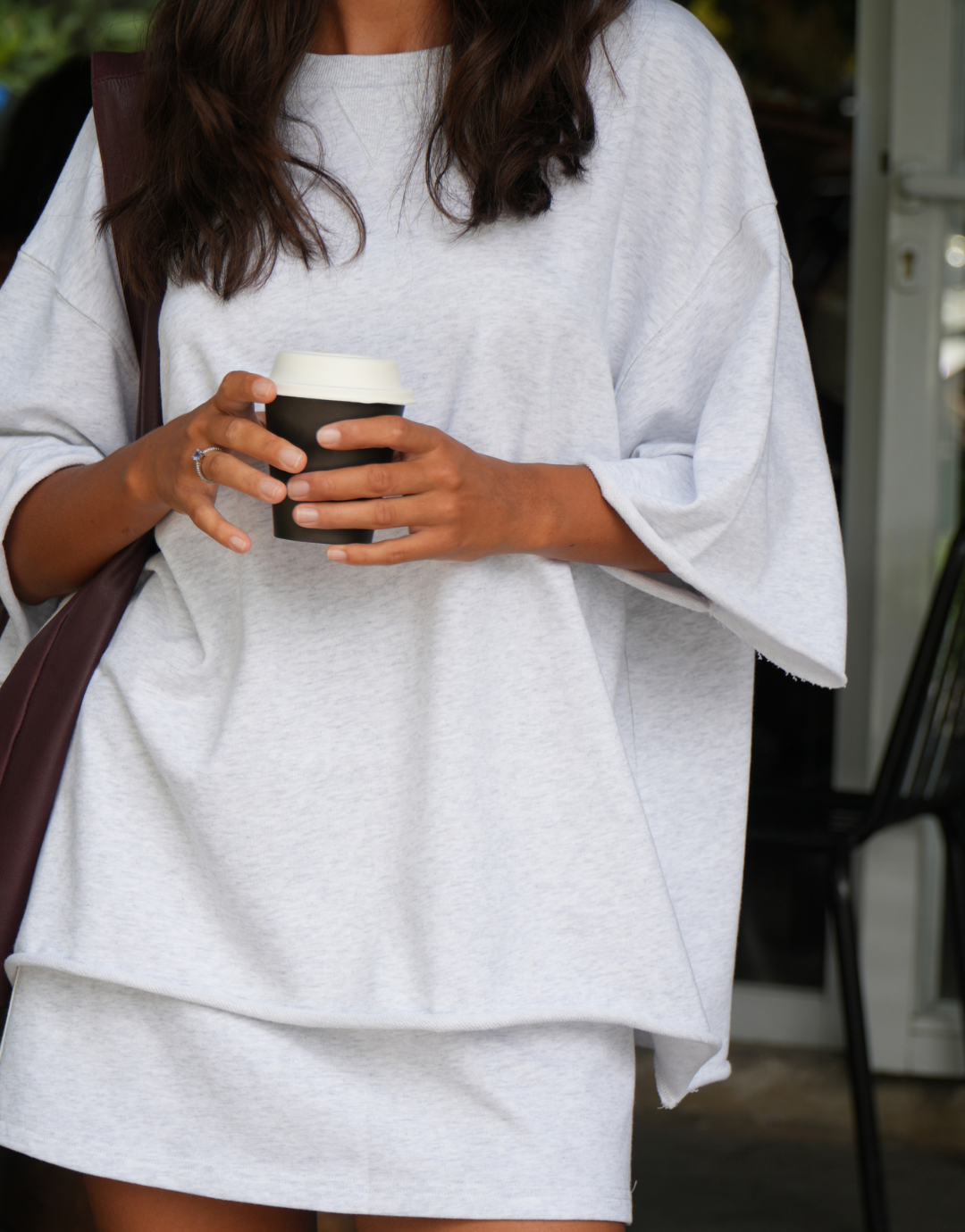 The Mason Tee- featuring raw hemlines and an oversized design. Pair back with the Marley Pants or Maya Mini Skirt.