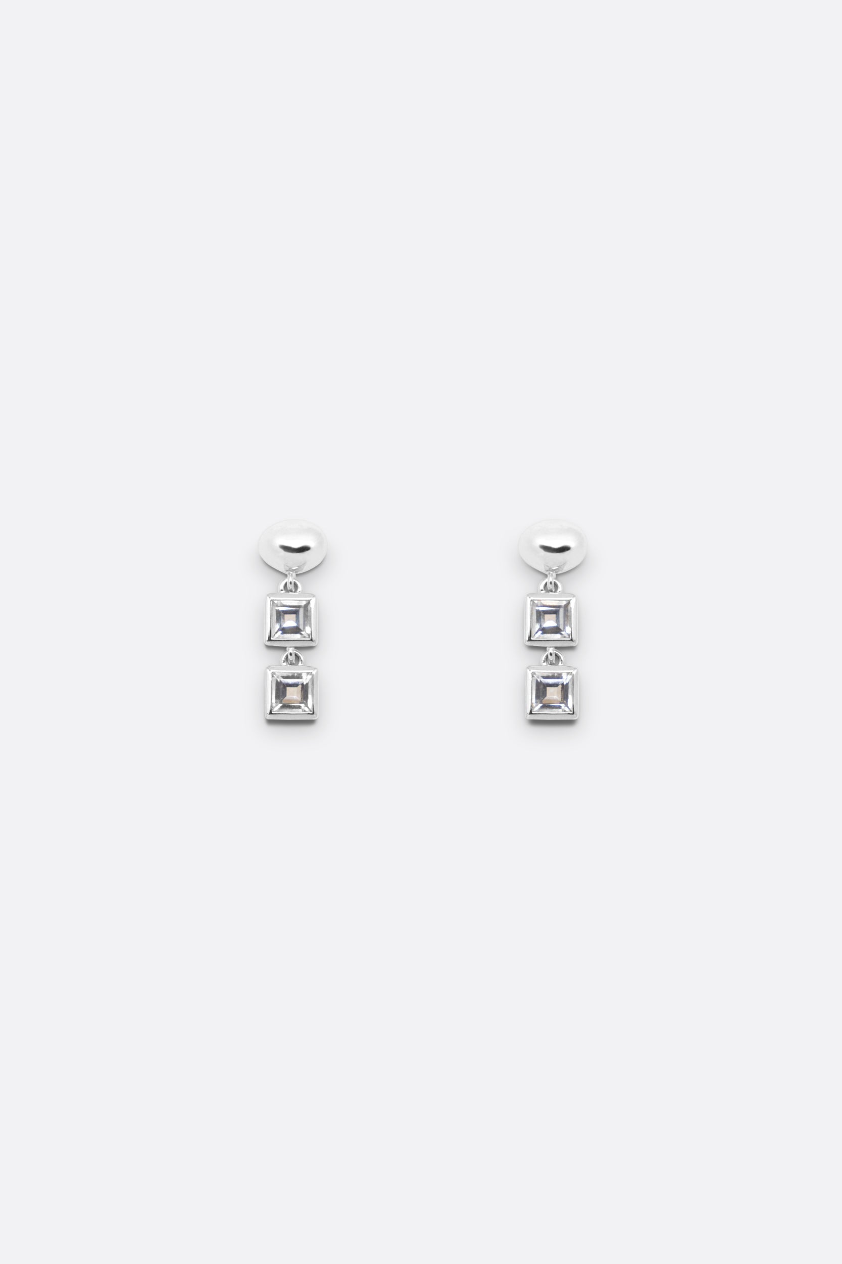 An organic stud with two square-cut Topaz gemstones suspended beneath. A clean drop with subtle movement, light enough for constant wear.